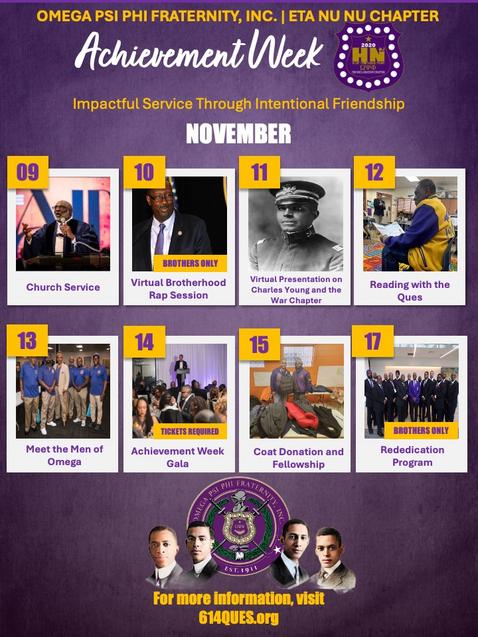 Interested in learning more about Omega Psi Phi Fraternity, Inc. and the work of the Eta Nu Nu Chapter in Columbus? Meet the Men of Omega on November 13, 2025 is an opportunity to engage with our Brotherhood, learn about our values, service, and impact, and ask informed questions about membership.